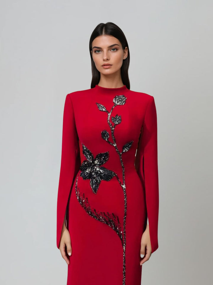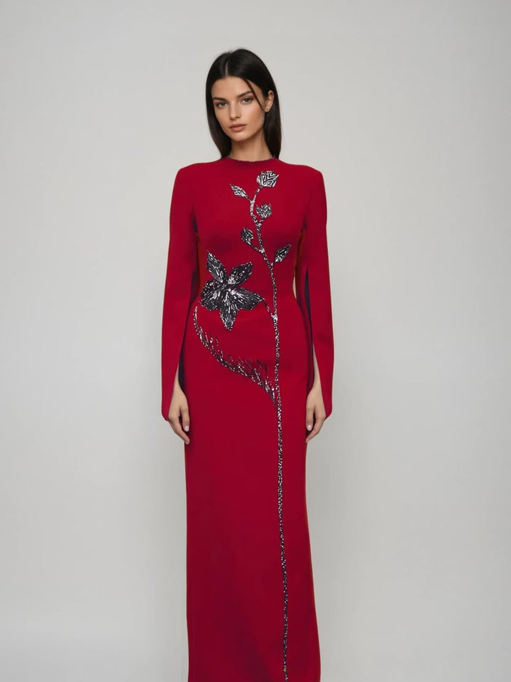 Elevate your evening look with the Leraya Rhinestone Split Flower Maxi Dress, where elegance meets glamour. This stunning floor-length gown features intricate floral detailing adorned with shimmering rhinestones that catch the light beautifully. The strategic side split adds a touch of allure and movement, while the flowing silhouette flatters every figure. Perfect for galas, weddings, or special occasions, this dress transforms you into the center of attention. Crafted for those who refuse to compromise on style, the Leraya delivers red-carpet sophistication with every step.