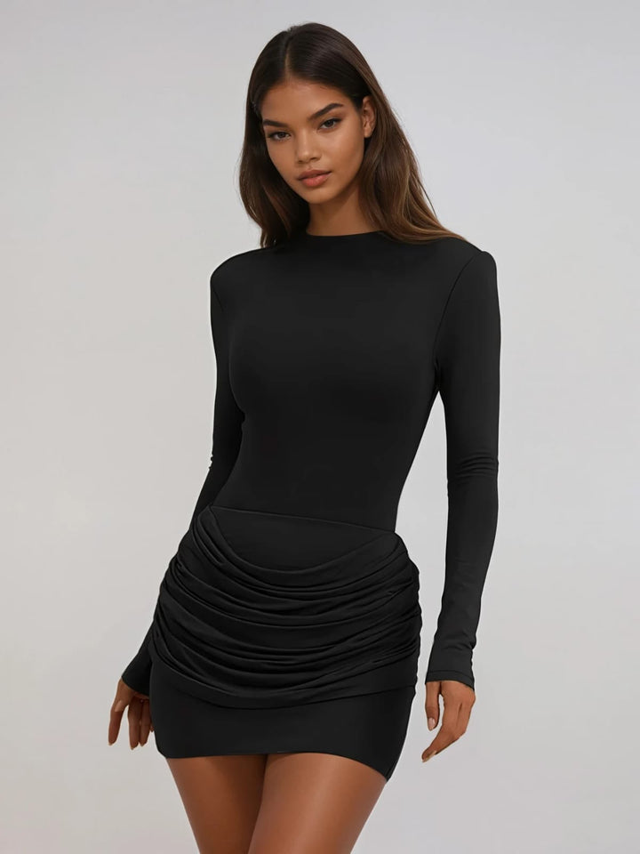 Elevate your wardrobe with the Lyubov Long Sleeve Ruched Dress in Black—a sophisticated piece that combines timeless elegance with modern appeal. The rich black hue flatters all skin tones, while strategically placed ruching creates a flattering silhouette that accentuates your curves beautifully. Long sleeves offer versatile styling options for any season, making this dress perfect for everything from casual outings to special occasions. The luxurious fabric drapes gracefully, ensuring comfort without compromising on style. Whether you're dressing up for an evening out or down for brunch, this dress is your go-to choice for looking polished and put-together.