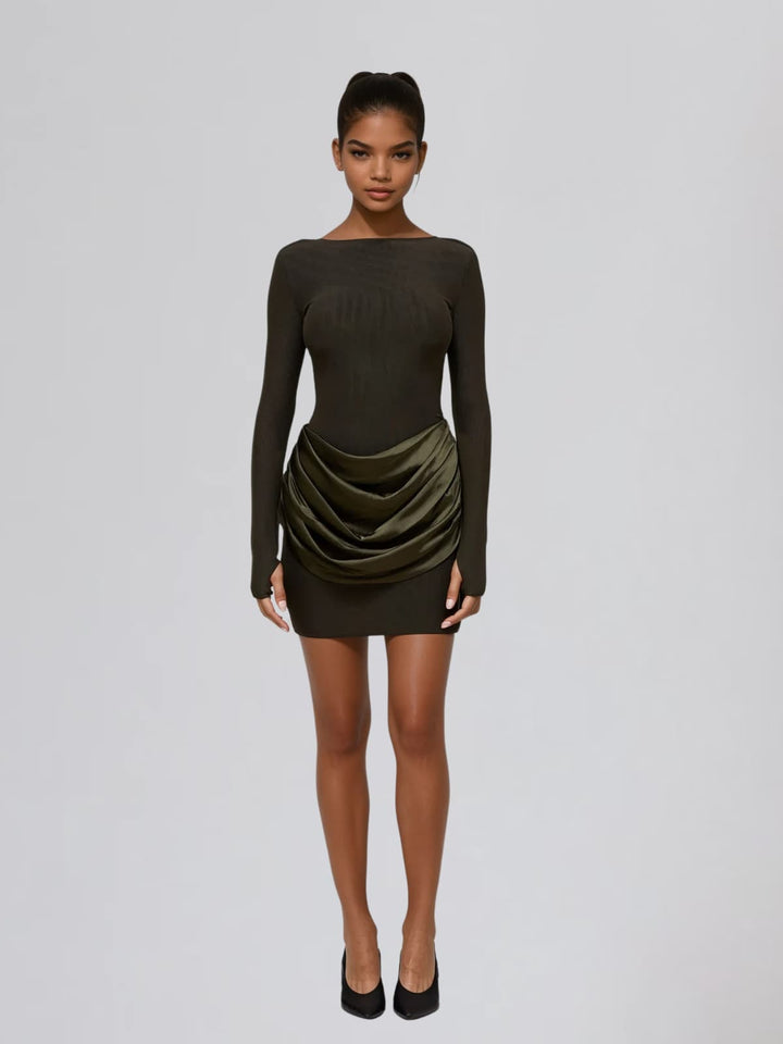 Lyusya Long Sleeve Ruched Dress In Deep Green