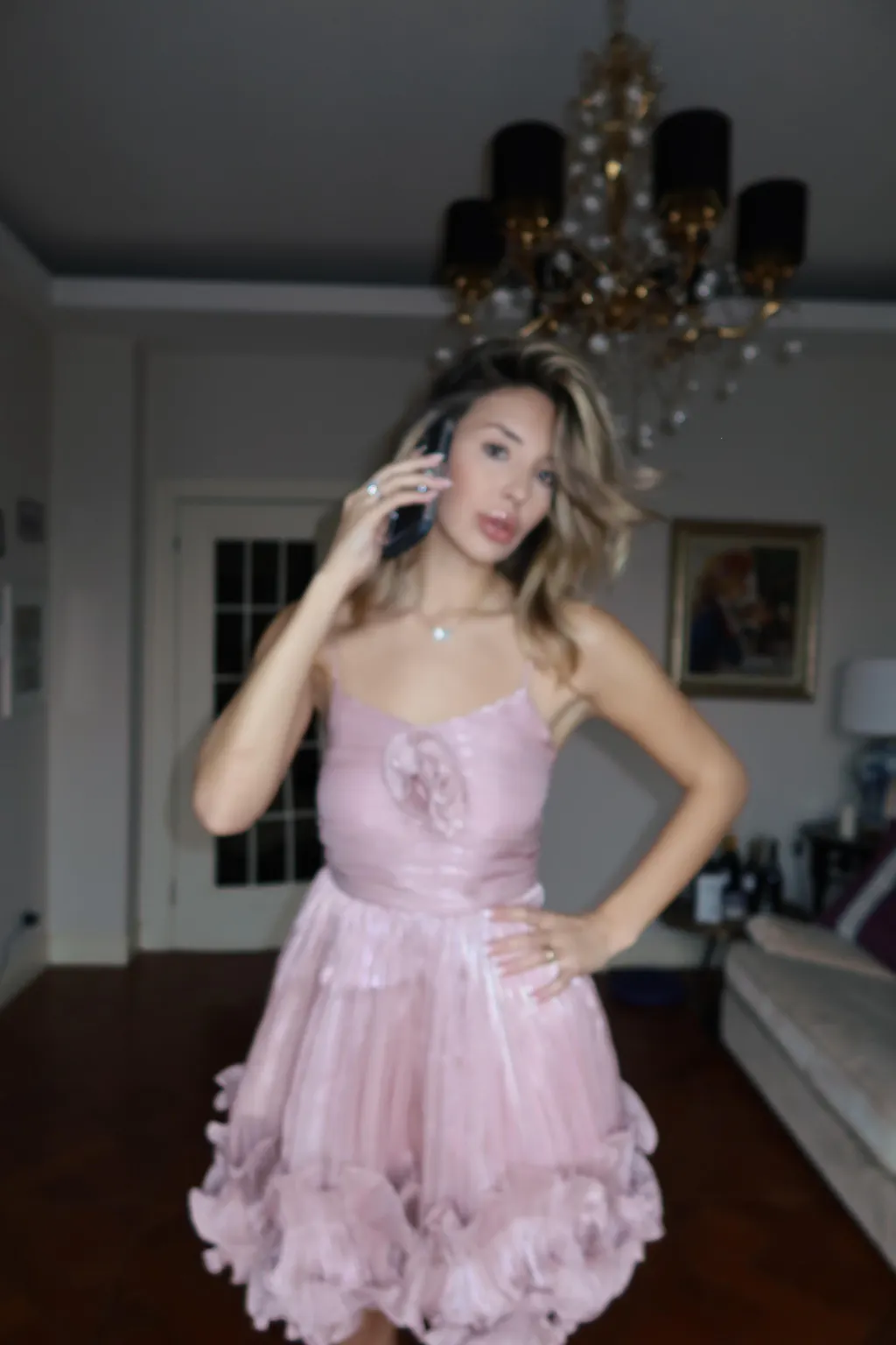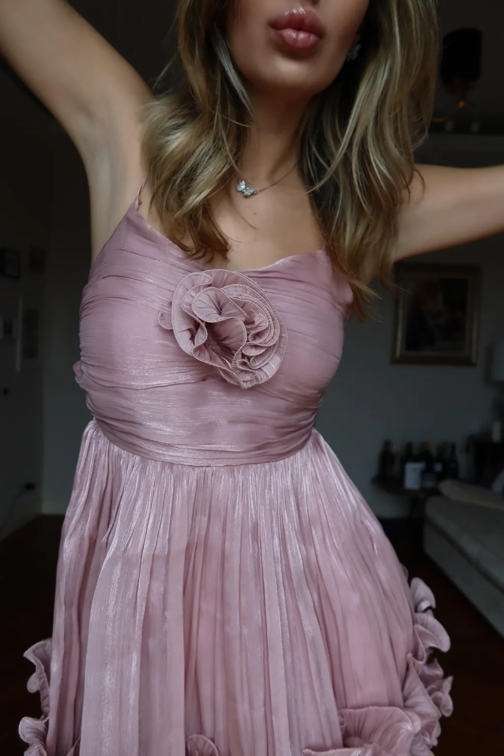 Naiya Spaghetti Flower Ruffle Mini Dress In Pink
