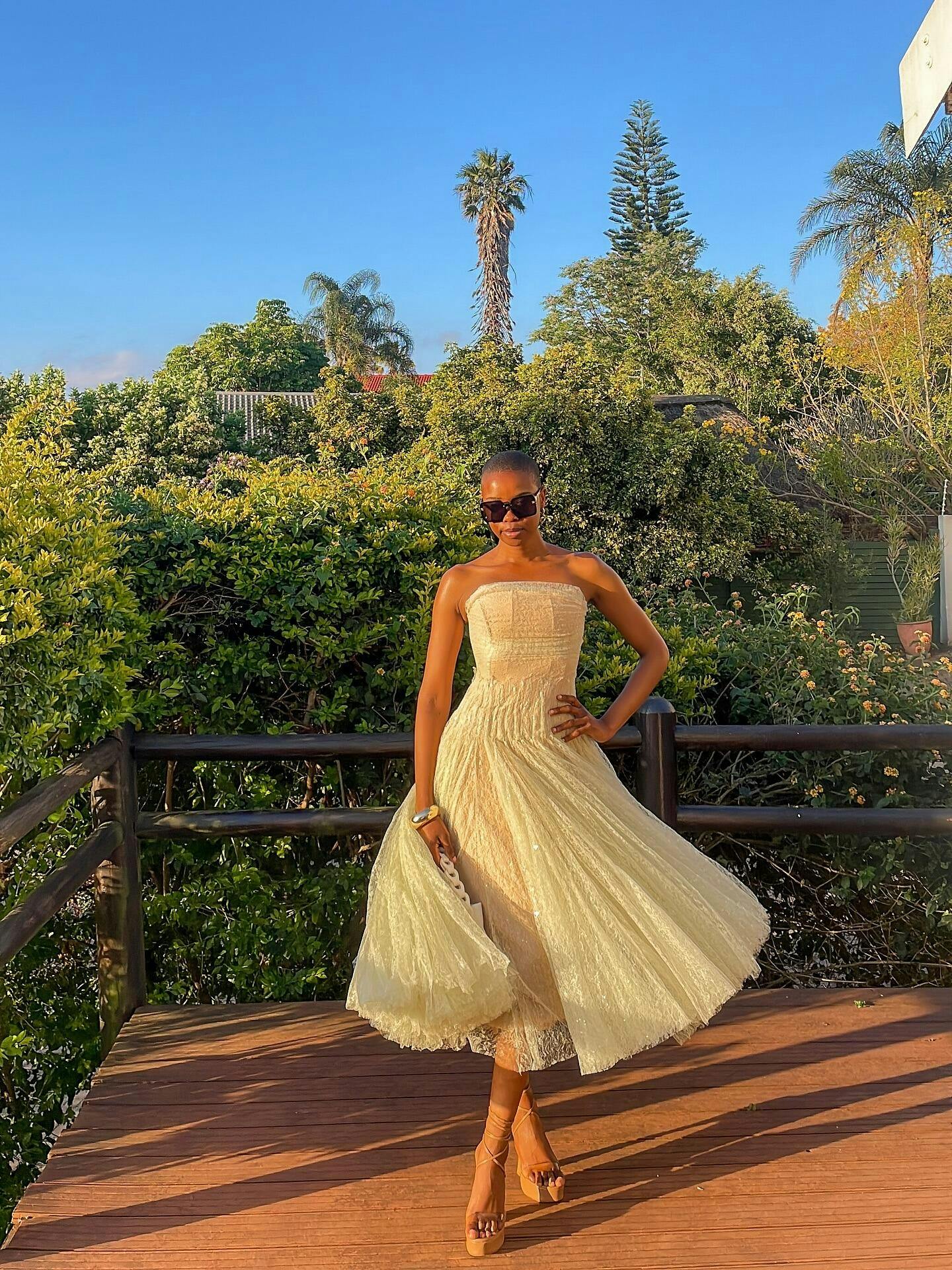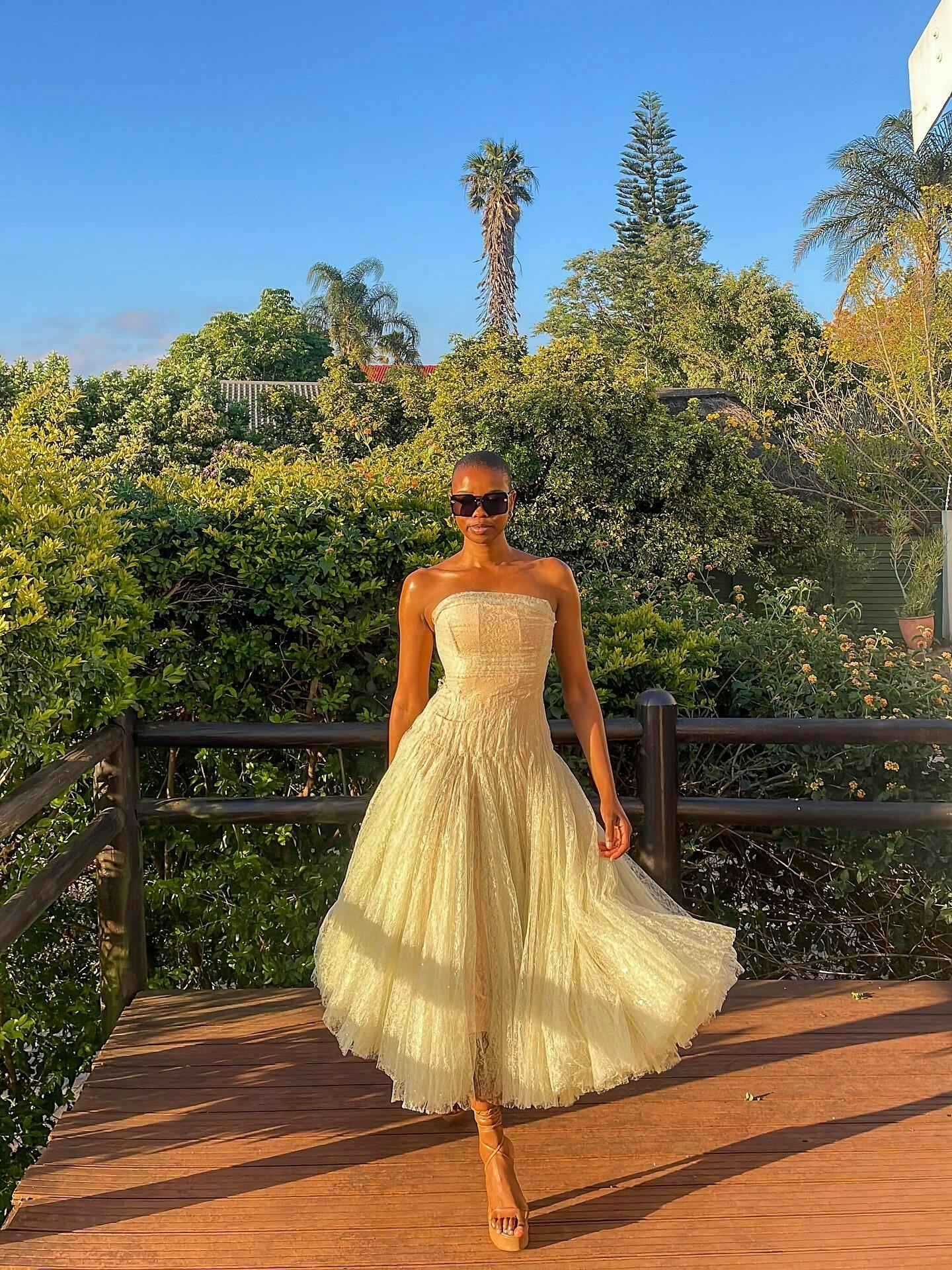 Make a bold statement with the Nakia Strapless Ruched Mesh Midi Dress in Green. This elegant dress features a strapless neckline and flattering ruched mesh fabric that enhances your silhouette with a touch of sophistication. Its midi length offers a perfect balance between chic and classy, ideal for special occasions or evening events. Stand out effortlessly and embrace your confidence in this stunning green dress.