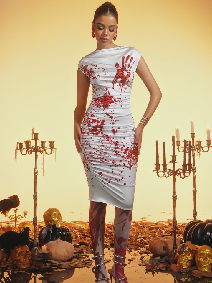 Ozgoth Sleeveless Blood Ruched Midi Dress