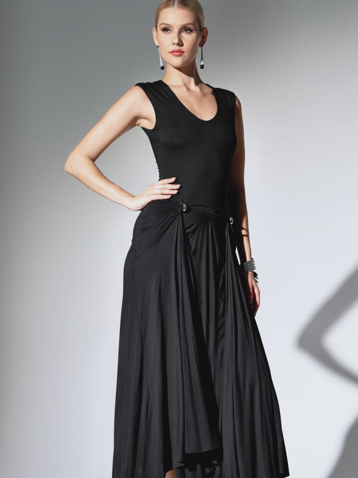 Make a stunning statement with the Paldor V Neck Ruched Maxi Dress in Black. Designed to accentuate your curves, the ruched detailing creates a flattering fit, while the deep V-neckline adds a touch of elegance. Its flowing maxi length ensures graceful movement, perfect for formal events or evenings out. Embrace timeless sophistication with this versatile dress that effortlessly combines comfort and style.