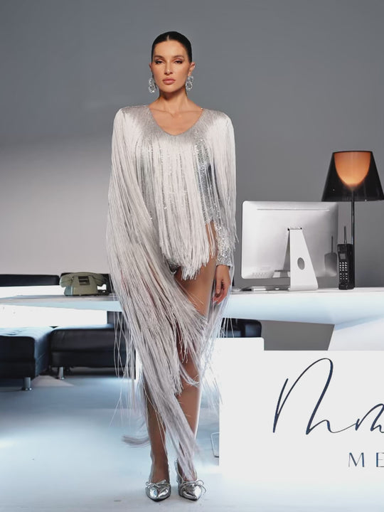 Elevate your wardrobe with the Quelith Plunge Neck Fringe Bodysuit—a bold statement piece that commands attention. The daring plunge neckline creates an alluring silhouette, while cascading fringe details add movement and dimension to every step. Crafted for confidence, this bodysuit transitions seamlessly from night out to special occasions. The fitted design flatters your figure, and the fringe elements ensure you'll stand out in any crowd. Perfect for those ready to embrace their bold side and make an unforgettable impression.