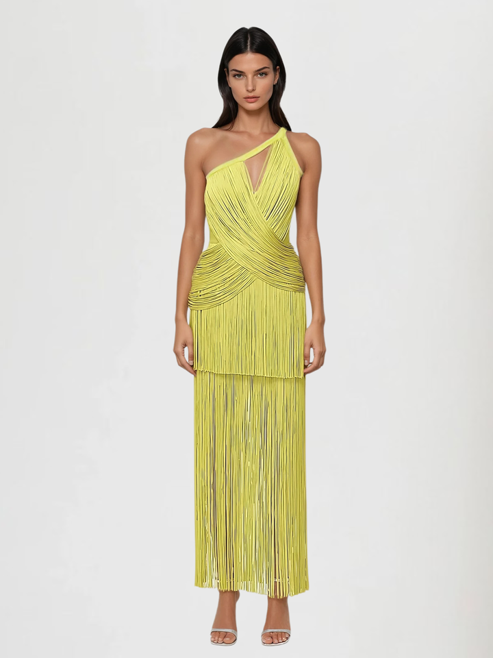 Elevate your wardrobe with the Quelys V Neck Fringe Midi Dress—a captivating piece that seamlessly blends sophistication with playful movement. The flattering V neckline draws attention upward while the cascading fringe detail adds dynamic texture and dimension to every step. Cut to a versatile midi length, this dress transitions effortlessly from daytime elegance to evening allure. Perfect for those who refuse to compromise between style and comfort, the Quelys dress makes a memorable statement at any occasion. Discover why this design is a must-have for fashion-forward individuals seeking that perfect balance of refined charm and contemporary flair.