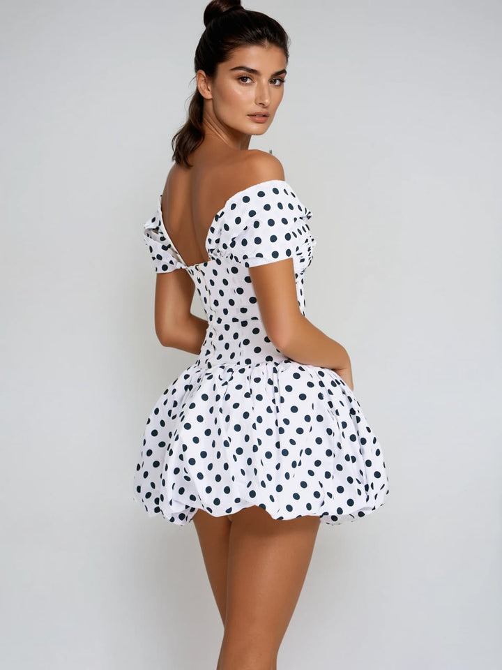 Qyren Off Shoulder Dot Cutout Bubble Mini Dress