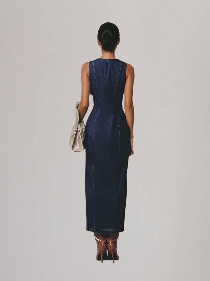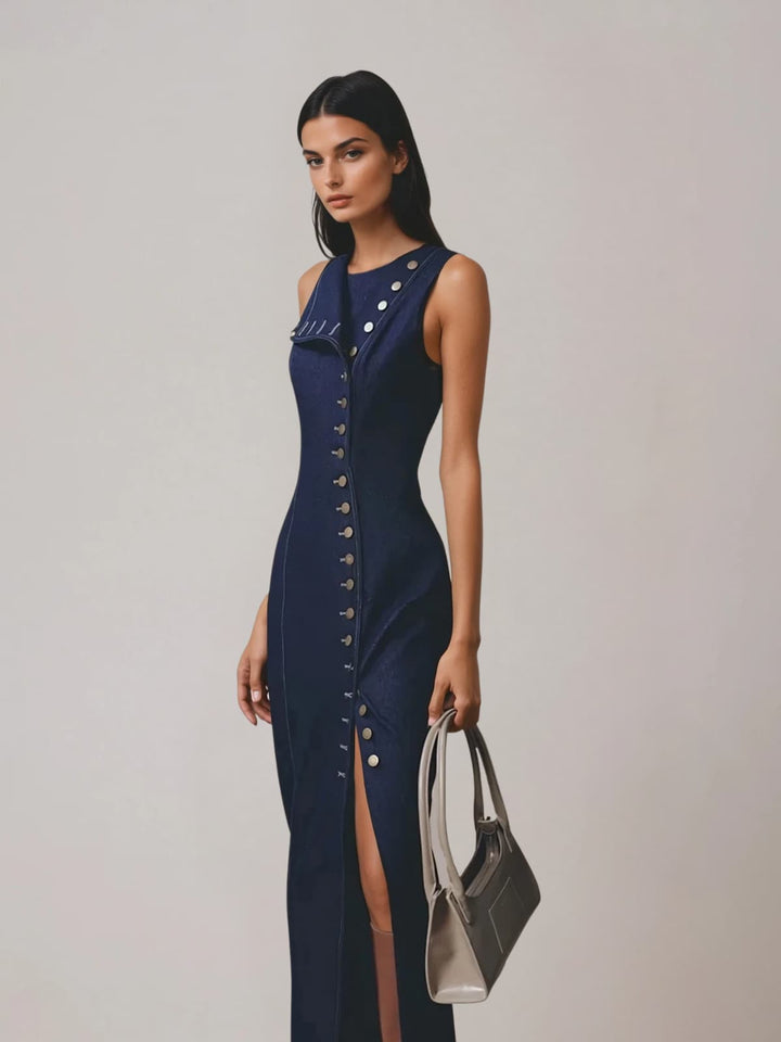 Elevate your style with the Ulvandis Button Up Split Denim Maxi Dress. This effortlessly chic dress features a flattering button-up front and a daring side split, offering both comfort and a touch of allure. Crafted from soft denim, it moves gracefully with you, perfect for day-to-night wear. Whether paired with sandals for a casual look or heels for an evening out, this versatile maxi dress is designed to make you feel confident and stylish every step of the way.
