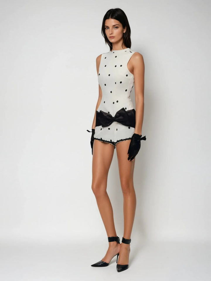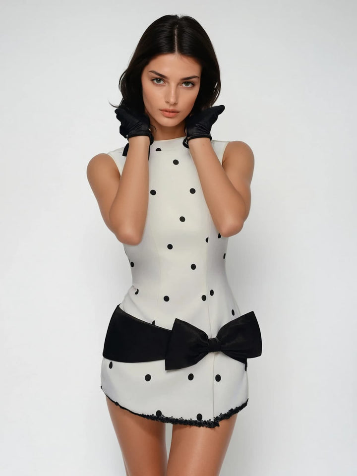 Uvandiel Sleeveless Dot Bow Mini Dress