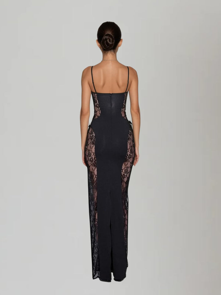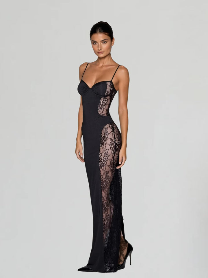 Elevate your elegance with the Velyxra Spaghetti Lace Maxi Dress. Featuring delicate lace detailing and slender spaghetti straps, this maxi dress effortlessly blends sophistication with a flattering silhouette. Perfect for special occasions or an evening out, it offers both comfort and timeless style that turns heads wherever you go. Embrace refined femininity and make a lasting impression in this captivating dress.