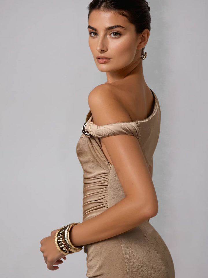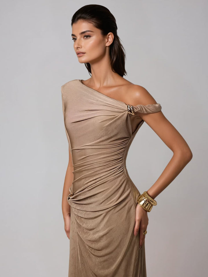 Elevate your elegance with the Weylin One Shoulder Ruched Maxi Dress. Its flattering ruched design gently sculpts your silhouette, while the one-shoulder style adds a sophisticated, modern touch. Crafted for comfort and grace, this maxi dress is perfect for making a lasting impression at any special occasion or evening event. Experience timeless style that moves effortlessly with you.
