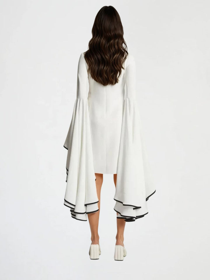 Elevate your wardrobe with the Weyra Cape Sleeve Ruffle Mini Dress, designed to blend effortless elegance with modern flair. The dramatic cape sleeves add a striking silhouette, while delicate ruffles bring a touch of playful sophistication. Perfect for both daytime events and evening outings, this mini dress offers a flattering fit that moves gracefully with you. Make every occasion memorable with this standout piece that combines comfort and style seamlessly.