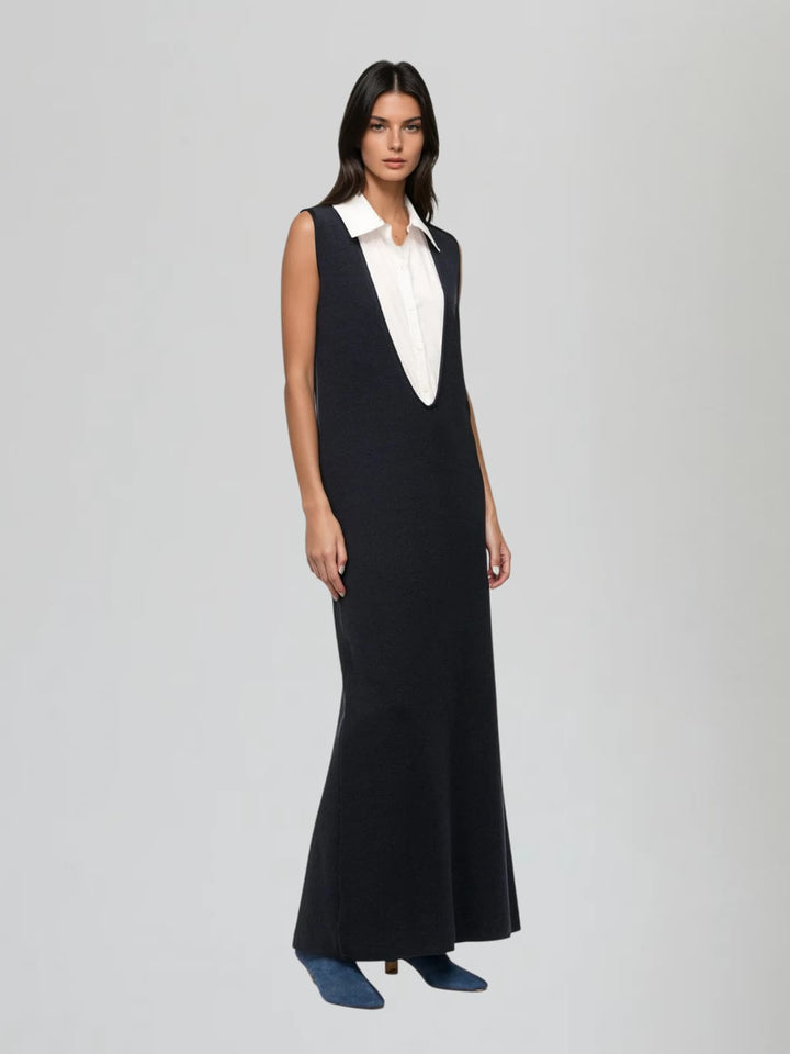 Wyxia Folded Collar Paneled Maxi Dress