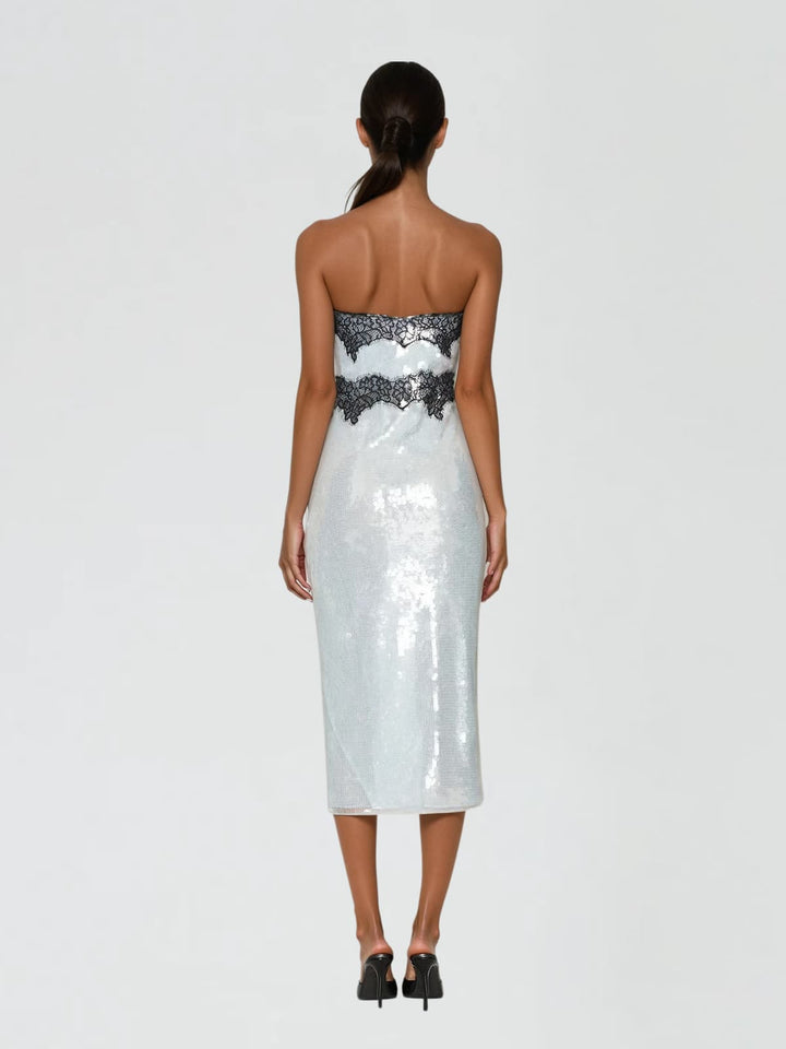 Elevate your evening style with the Yulren Strapless Sequin Midi Dress. Featuring a sleek strapless design and shimmering sequins, this dress promises to turn heads with every step. Its flattering midi length complements your silhouette, making it perfect for special occasions or glamorous nights out. Embrace effortless elegance and shine with confidence in this standout piece.