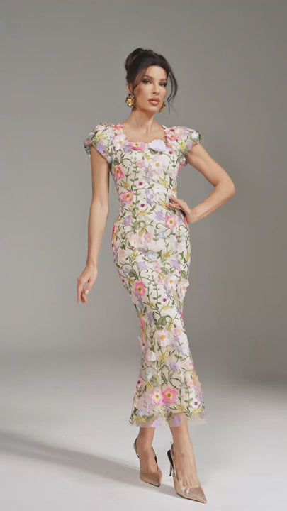 Elevate your style with the Zolthar Embroidered Flower Midi Dress, where delicate floral embroidery meets graceful midi length. Crafted to highlight your femininity, this dress offers a perfect blend of elegance and comfort, making it ideal for both special occasions and everyday wear. Embrace a look that captivates with every step while enjoying a flattering fit designed to enhance your silhouette. Make a memorable impression effortlessly in this charming, timeless piece.
