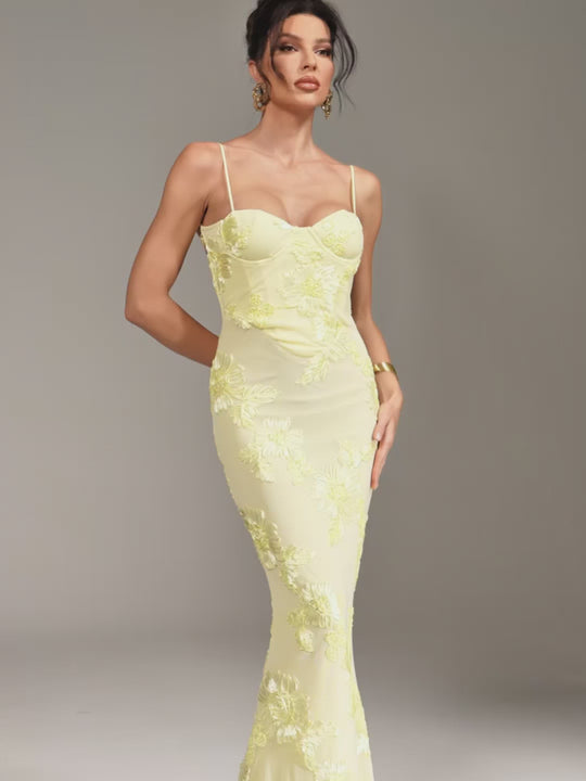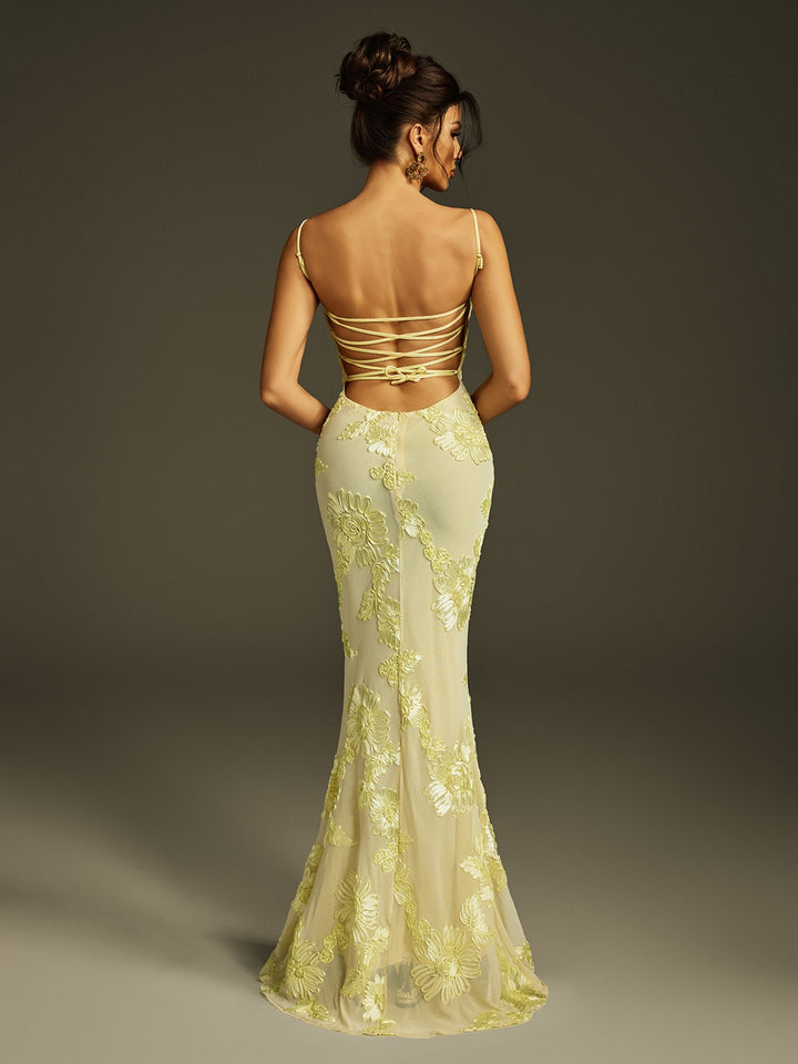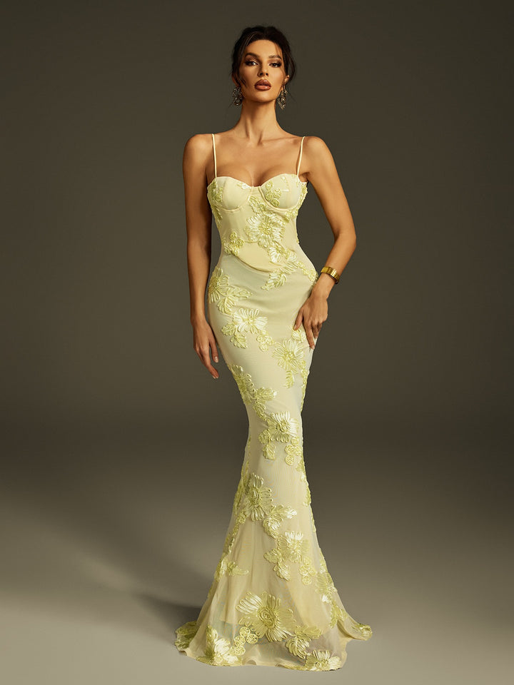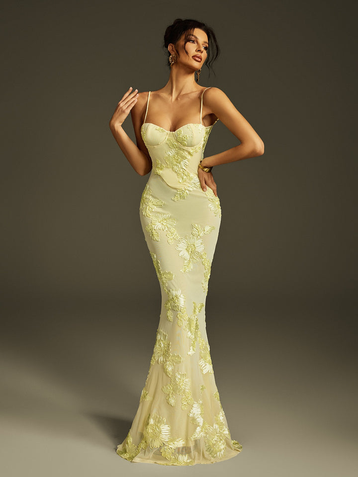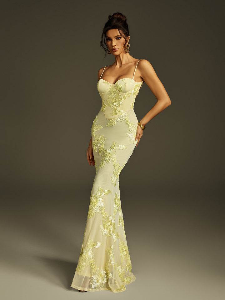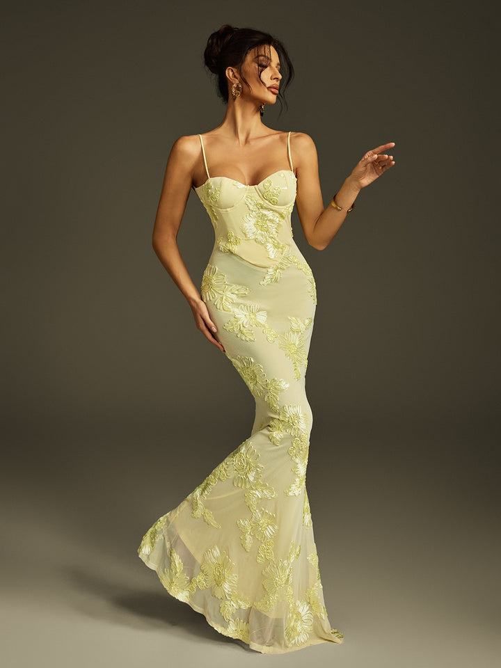 Zryne Spaghetti Embroidered Flower Maxi Dress