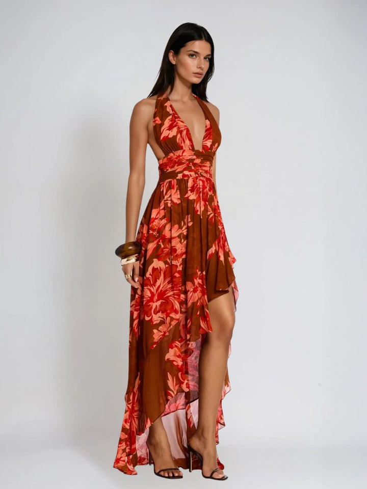 The Calara Backless Floral Printed Maxi Dress offers a perfect blend of elegance and allure. Featuring a striking backless design and vibrant floral print, this dress creates a captivating silhouette that’s ideal for summer events or evening occasions. Its flowing fabric ensures comfort while making a bold, stylish statement wherever you wear it.