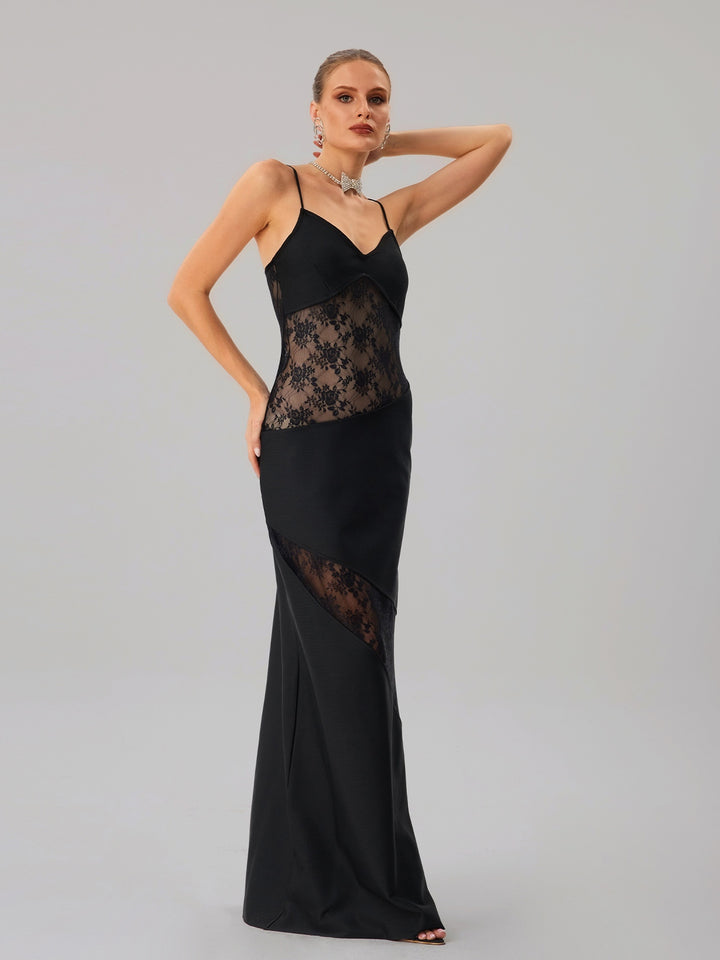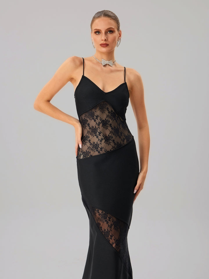 Faron Spaghetti Embroidered Bandage Maxi Dress