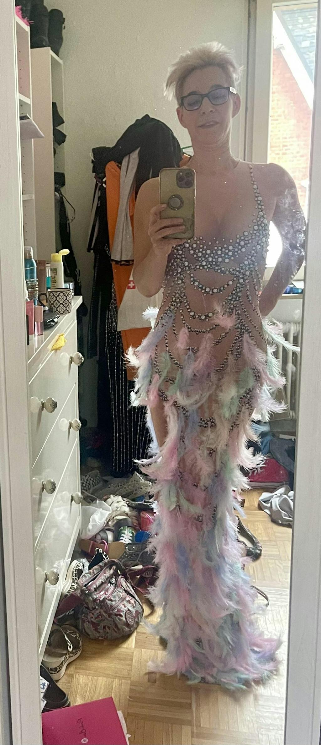 Inina Pearl Feather Asymmetric Dress - Mew Mews