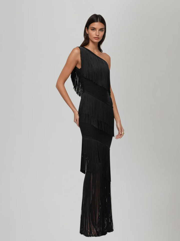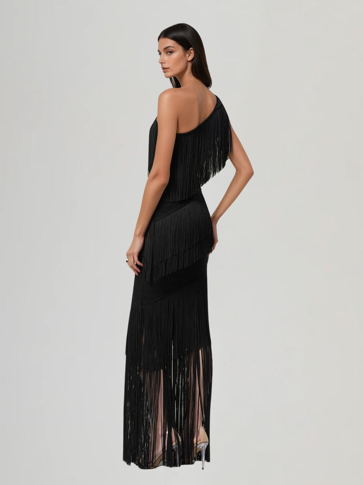 Kreutzix One Shoulder Fringe Bandage Maxi Dress