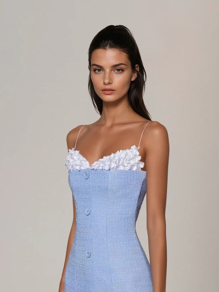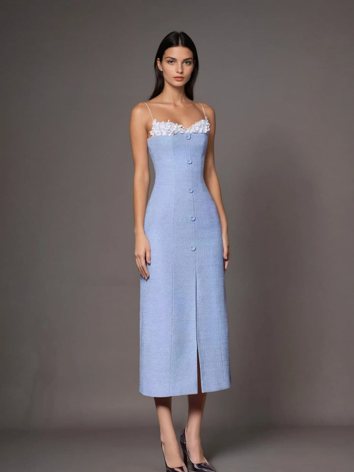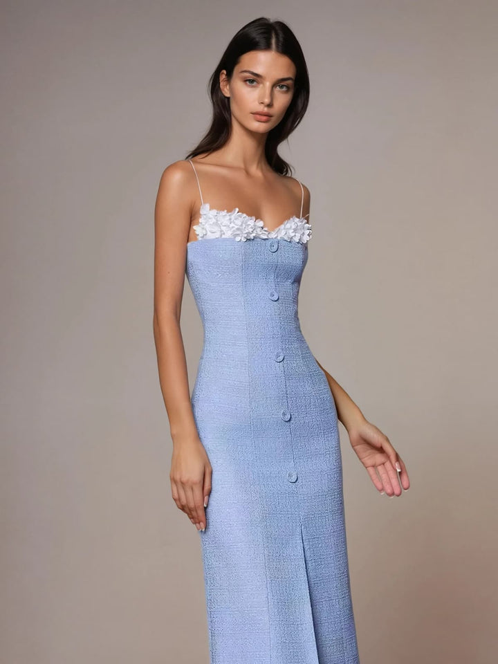Kuratox Spaghetti Flower Split Midi Dress In Blue