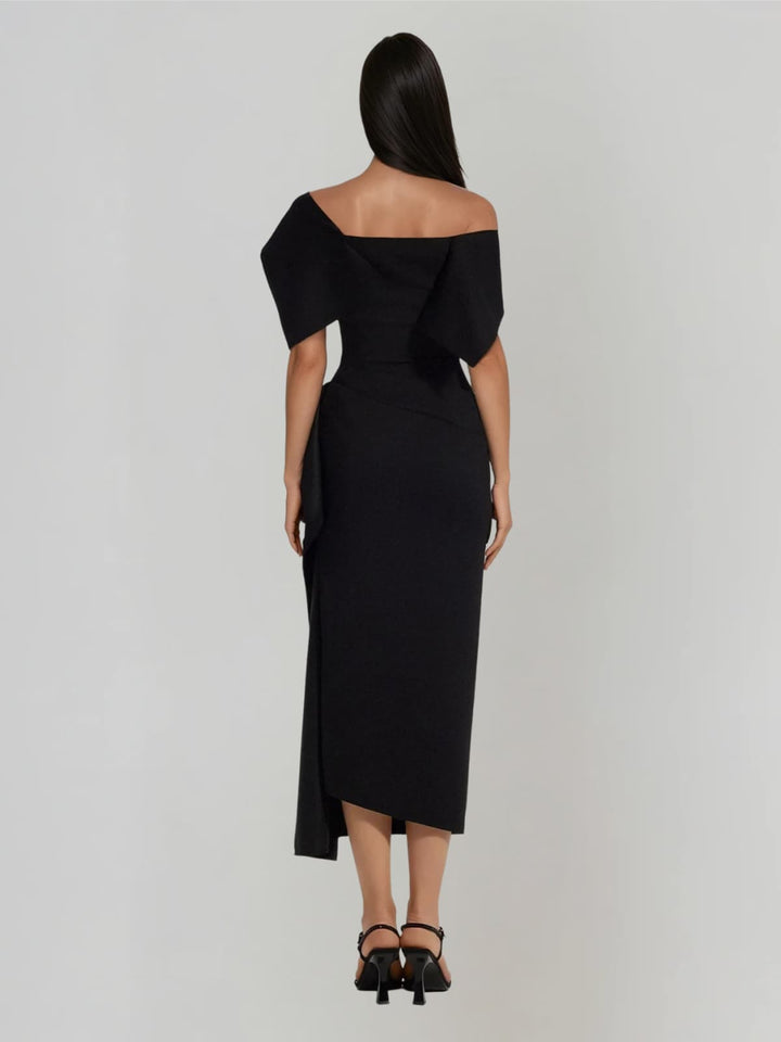 Nyronix One Shoulder Draped Midi Dress