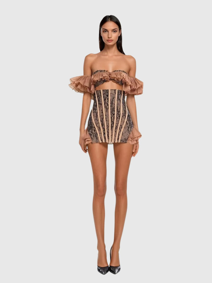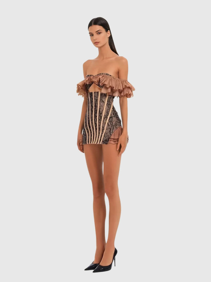 Turn heads effortlessly in the Owino Off Shoulder Lace Cutout Mini Dress. This elegant piece features delicate lace detailing and a flattering off-shoulder design that enhances your silhouette. The subtle cutouts add a touch of allure, making it perfect for evening events or special occasions. Its mini length brings a playful charm while ensuring comfort and freedom of movement. Elevate your wardrobe with a dress that combines sophistication and confidence in every wear.