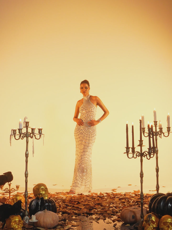 Pagan Halterneck Sequin Cobweb Maxi Dress