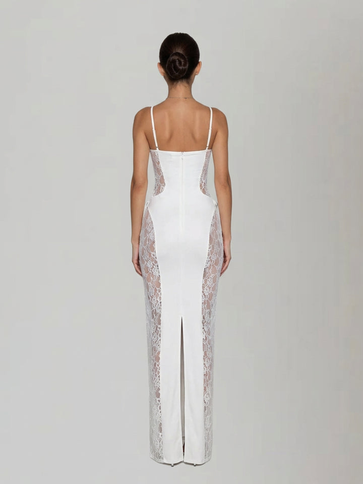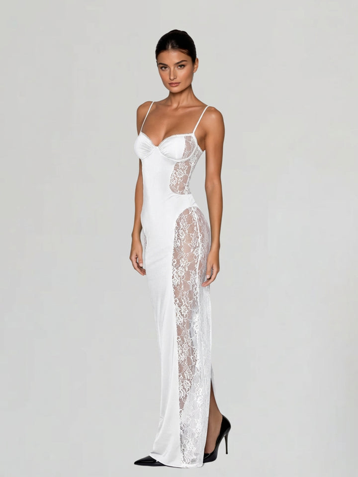 Elevate your elegance with the Velyxra Spaghetti Lace Maxi Dress. Featuring delicate lace detailing and slender spaghetti straps, this maxi dress effortlessly blends sophistication with a flattering silhouette. Perfect for special occasions or an evening out, it offers both comfort and timeless style that turns heads wherever you go. Embrace refined femininity and make a lasting impression in this captivating dress.