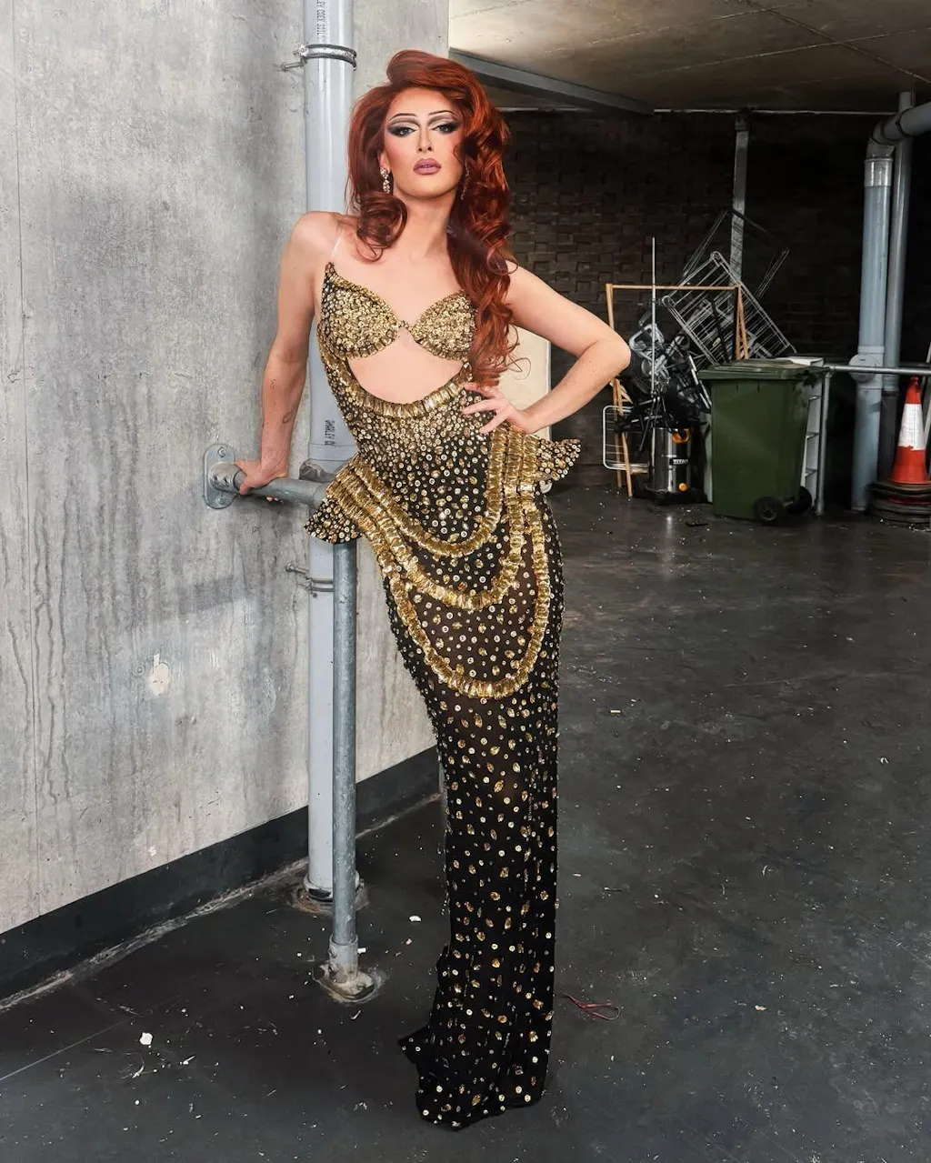Arygon Strapless Cutout Crystal Maxi Dress In Black & Gold