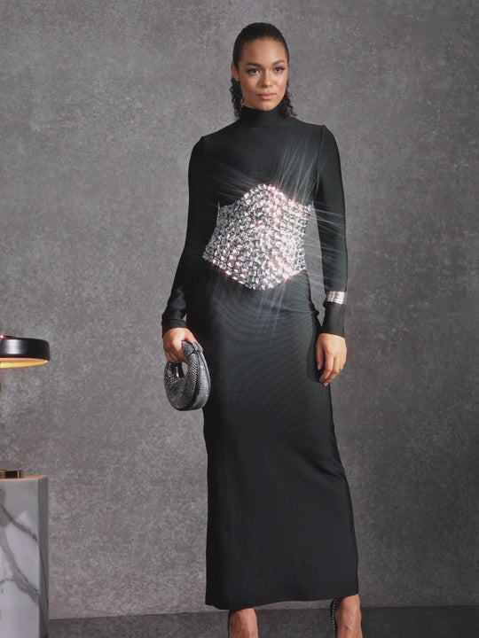 Bedros High Neck Crystal Bandage Dress