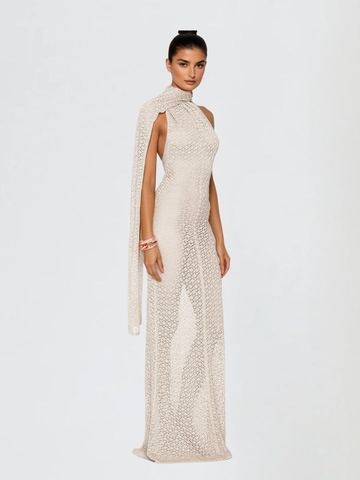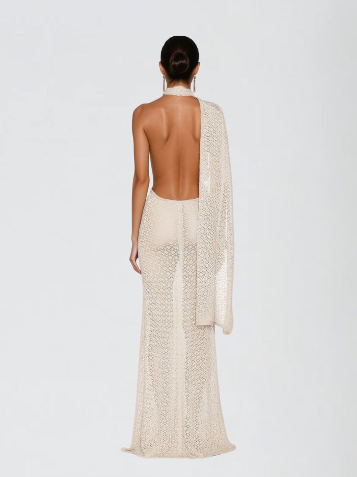 Calore Backless Shawl Cutout Maxi Dress In Apricot