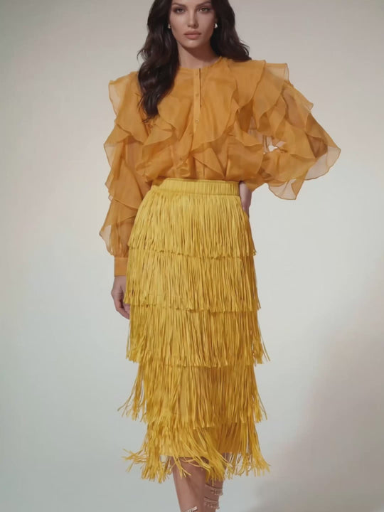 Doryxel Ruffle Fringe Skirt Set