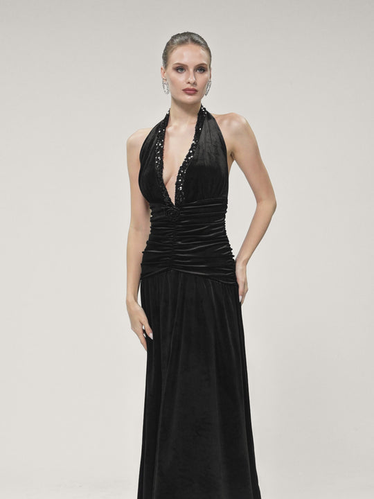 Faro Halterneck Ruched Maxi Dress