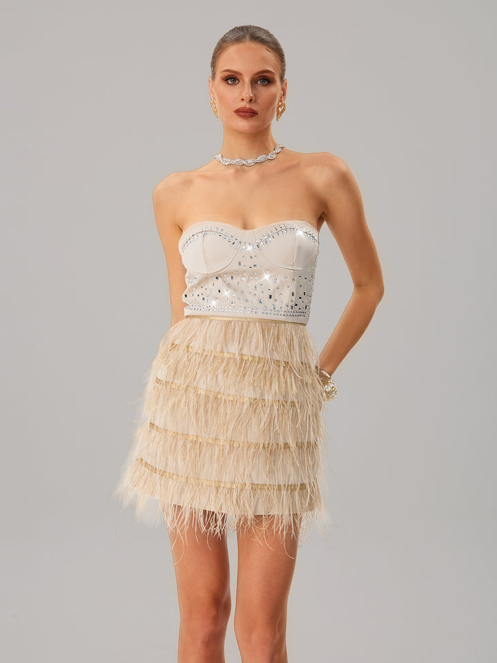 Jagtopa Strapless Fringe Rhinestone Mini Dress