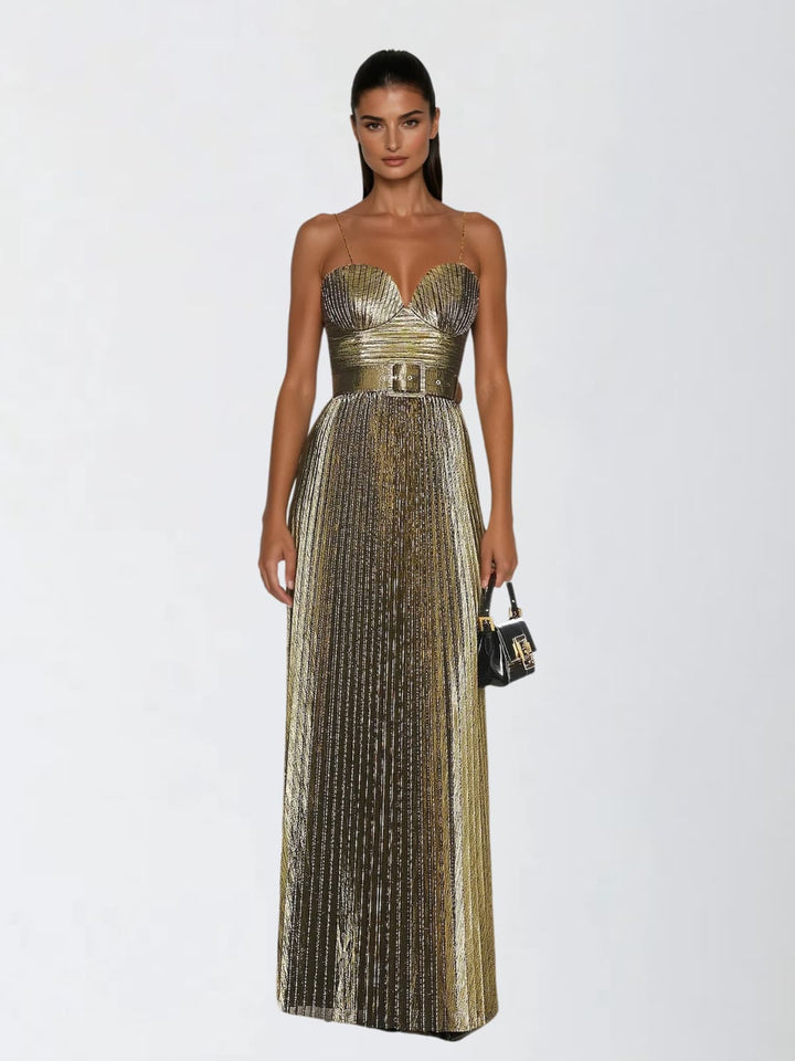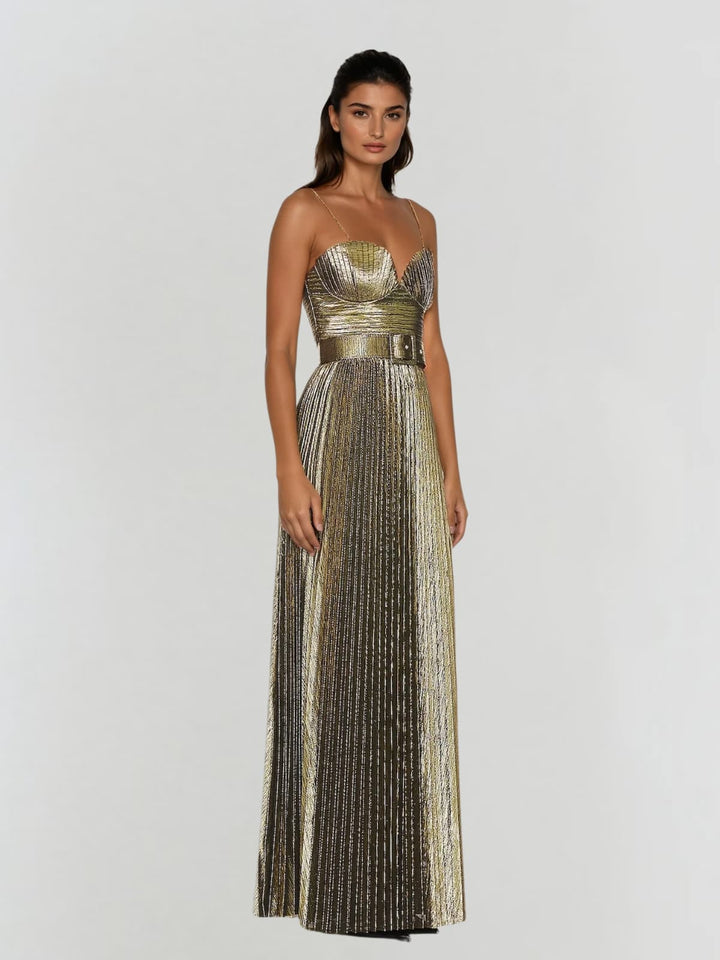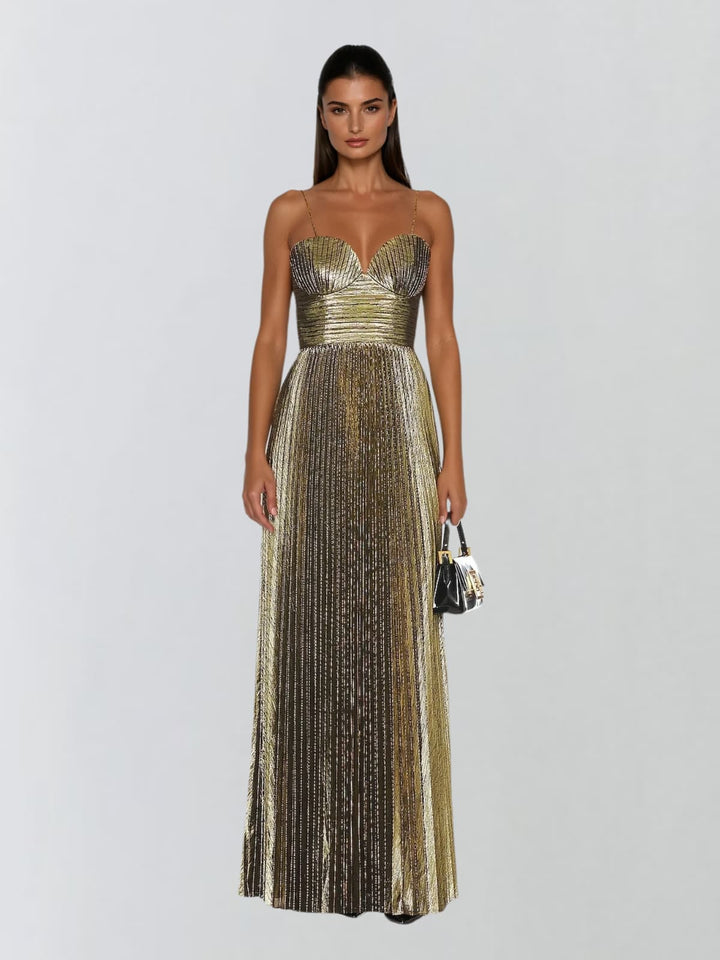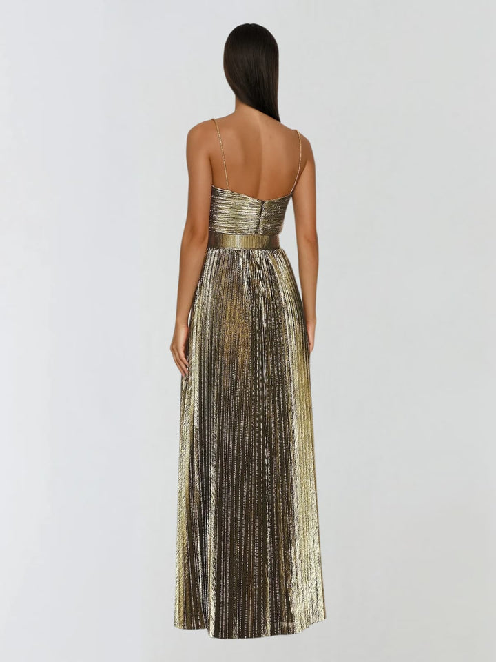 Jetgraph Spaghetti Pleated Metallic Maxi Dress