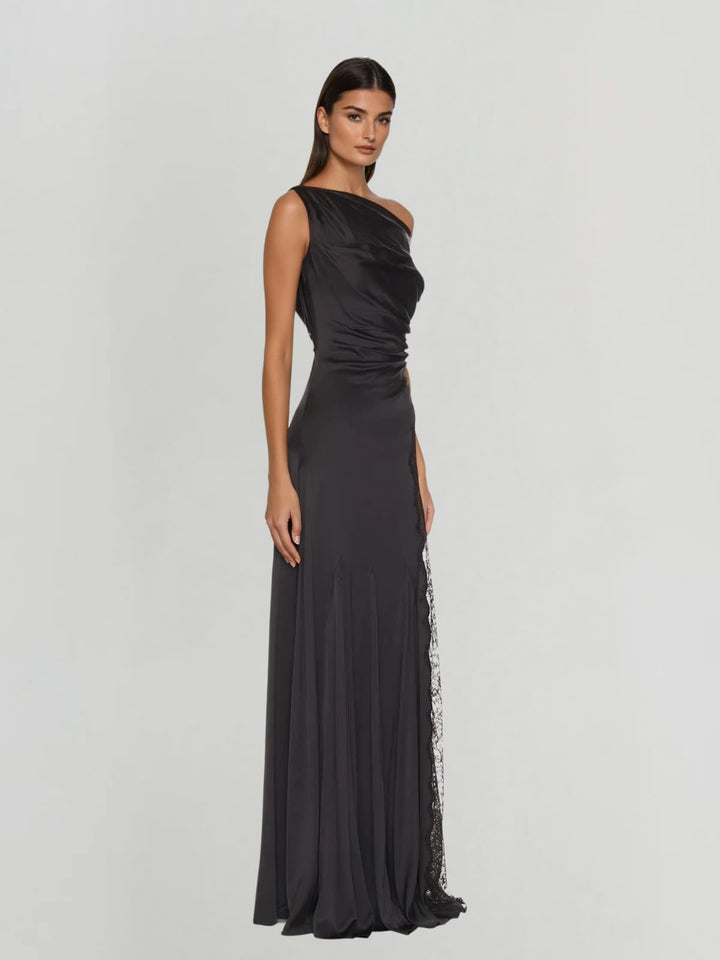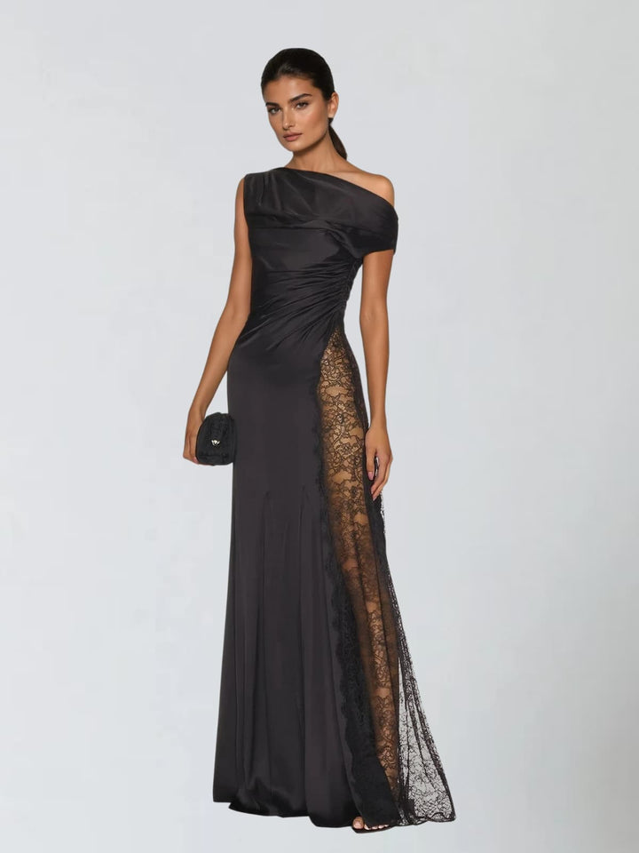 Lefschetz One Shoulder Lace Detail Maxi Dress