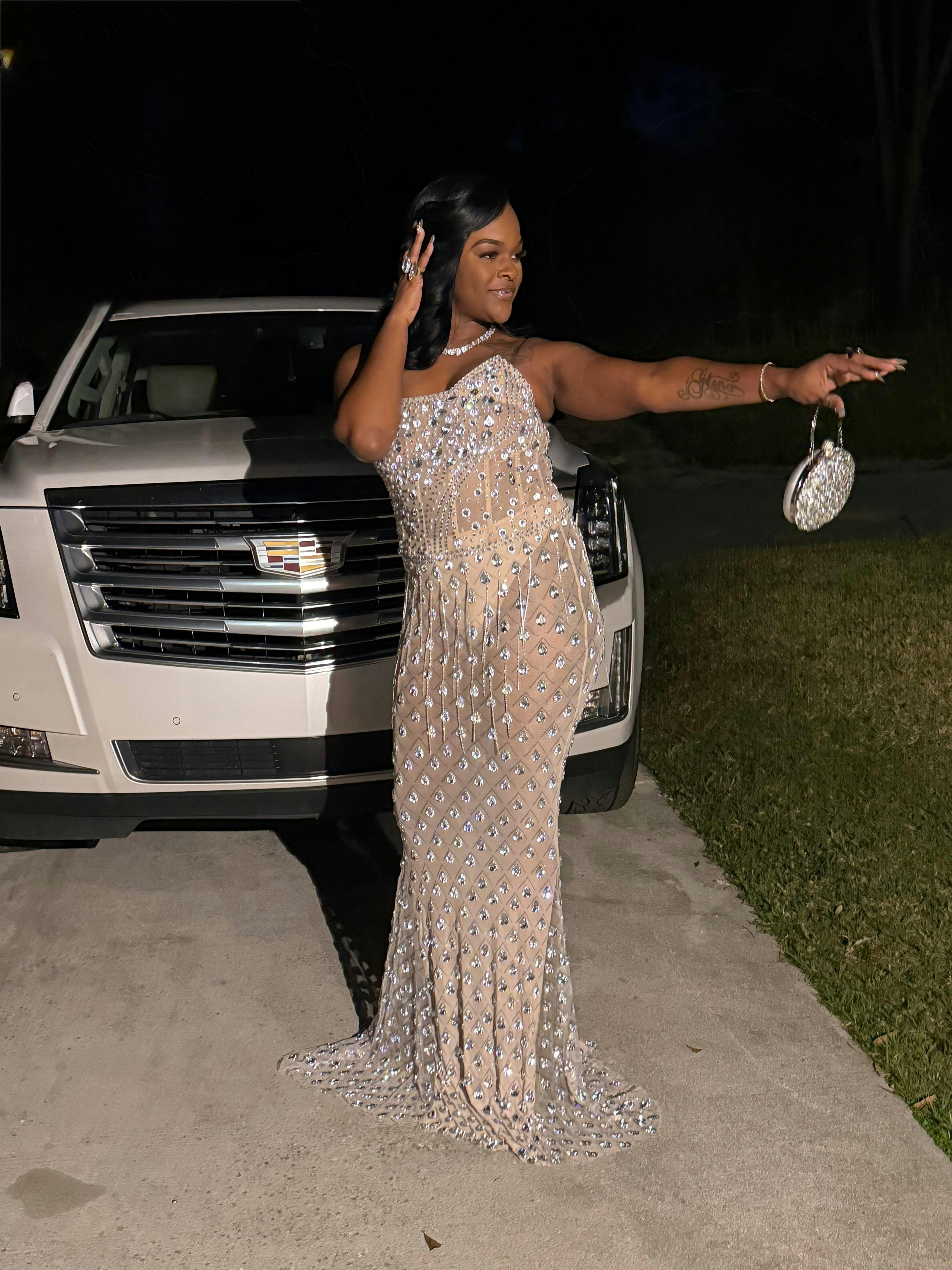Enchant and dazzle in the Sean Strapless Rhinestone Mesh Maxi Dress. This stunning piece features delicate rhinestone detailing and a strapless design, perfect for any special occasion. The flowing maxi length adds a touch of sophistication, while the mesh fabric adds a touch of glamour. Elevate your wardrobe with this luxurious and exclusive dress.