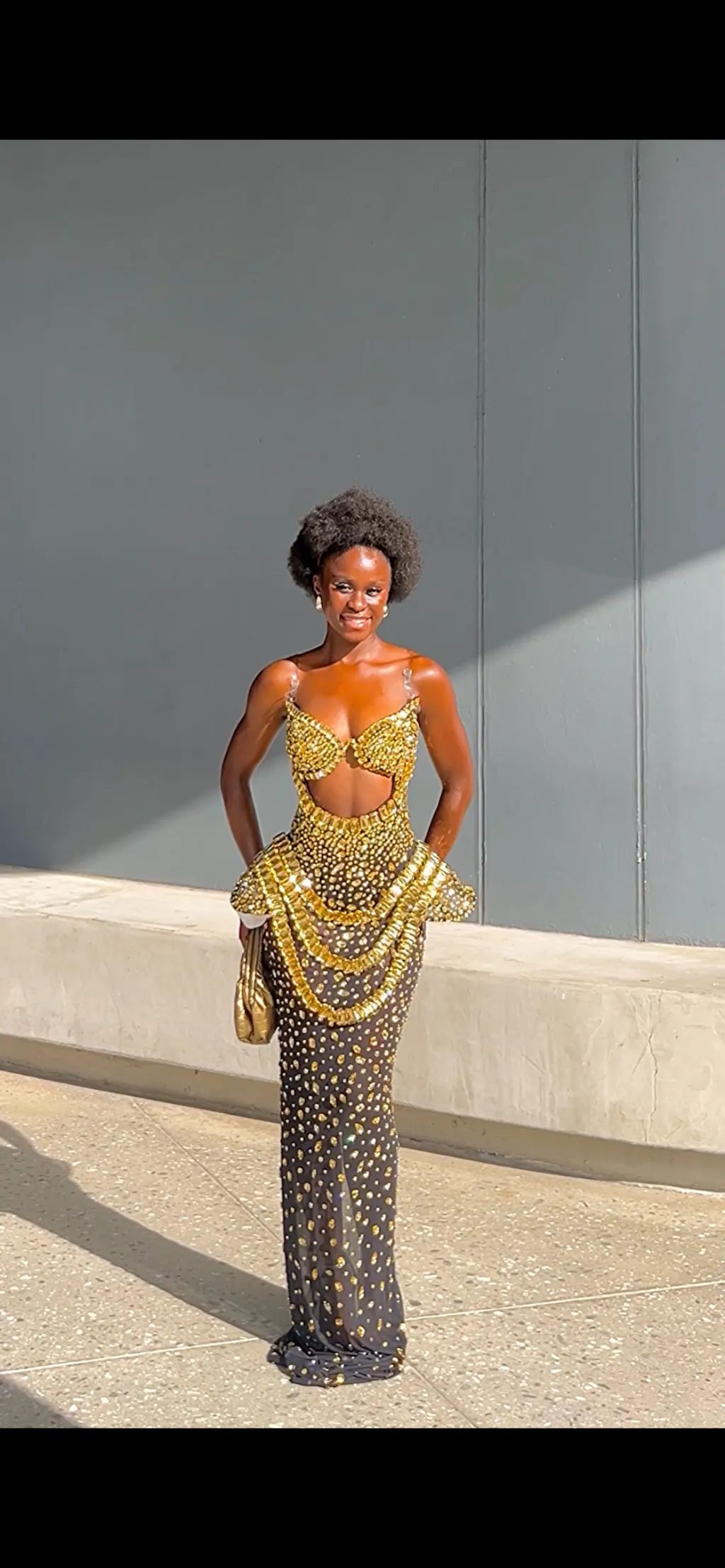 Arygon Strapless Cutout Crystal Maxi Dress In Black & Gold