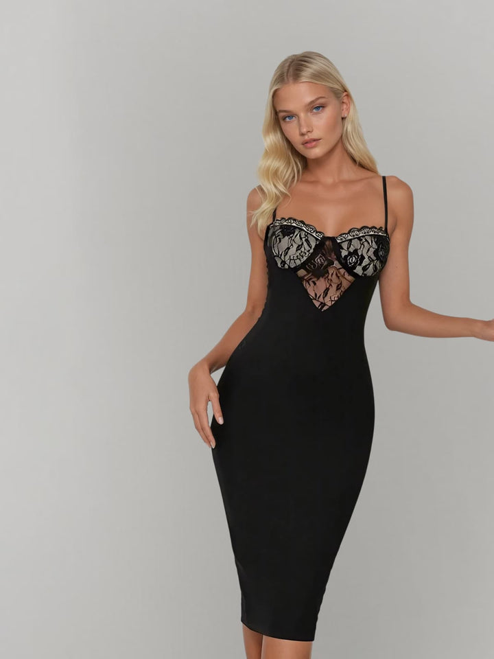 Turn heads effortlessly in the Diapent Spaghetti Lace Bandage Mini Dress. This figure-hugging design combines delicate lace with a sleek bandage silhouette, accentuating your curves with a flattering fit. Adjustable spaghetti straps provide comfort and a customizable fit, while the mini length adds a touch of playful allure. Perfect for evening events or special nights out, this dress is your go-to choice for a confident and captivating look.