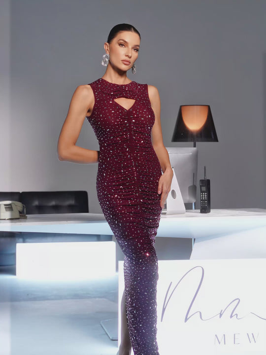 Feroze Sleeveless Cutout Rhinestone Maxi Dress