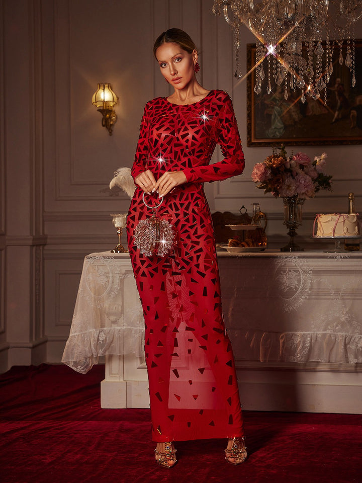 Guthrie Long Sleeve Acrylic Mesh Maxi Dress