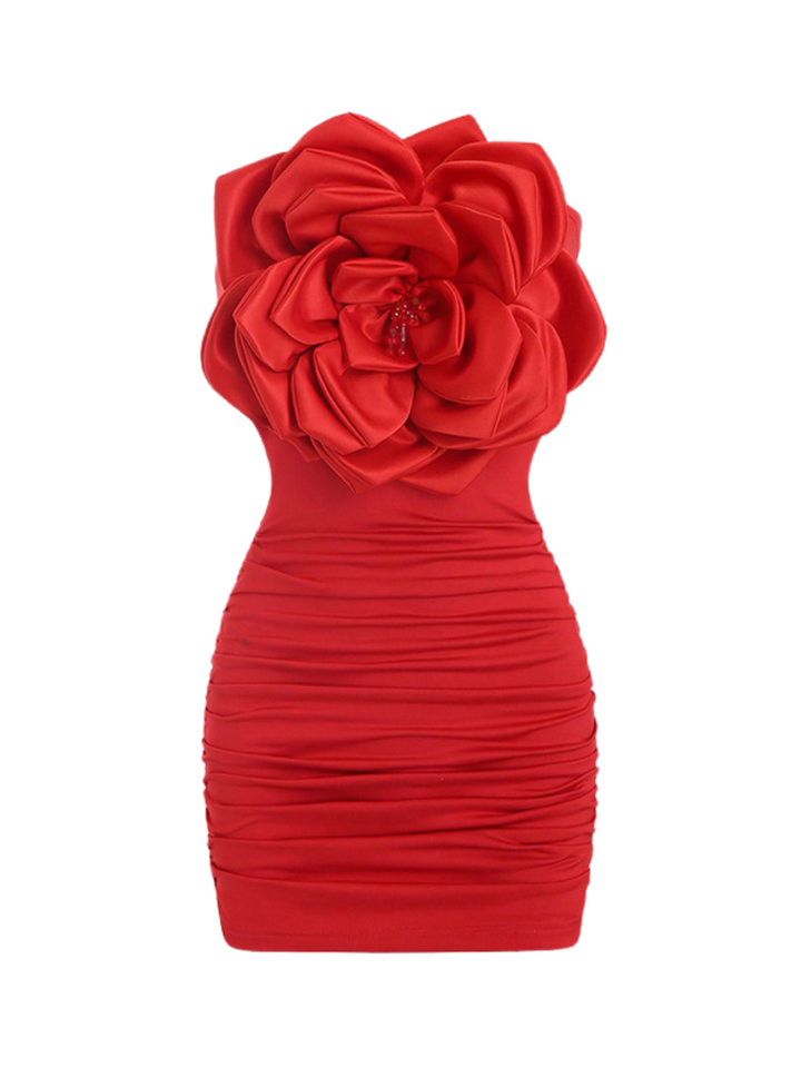 Isochrona Strapless Flower Mini Dress