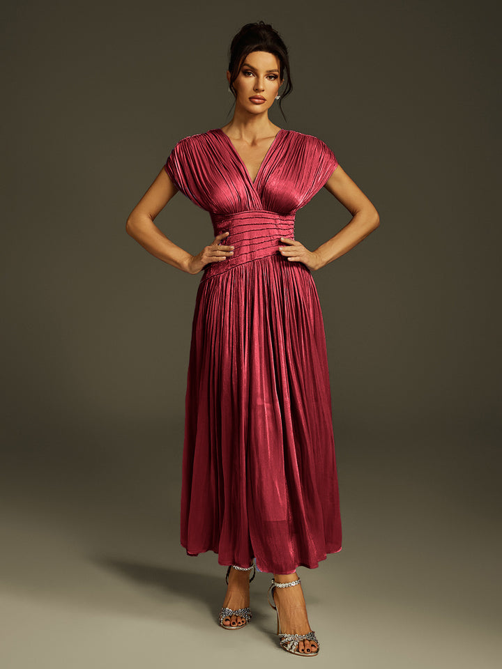 Kasen V Neck Ruched Maxi Dress In Wine
