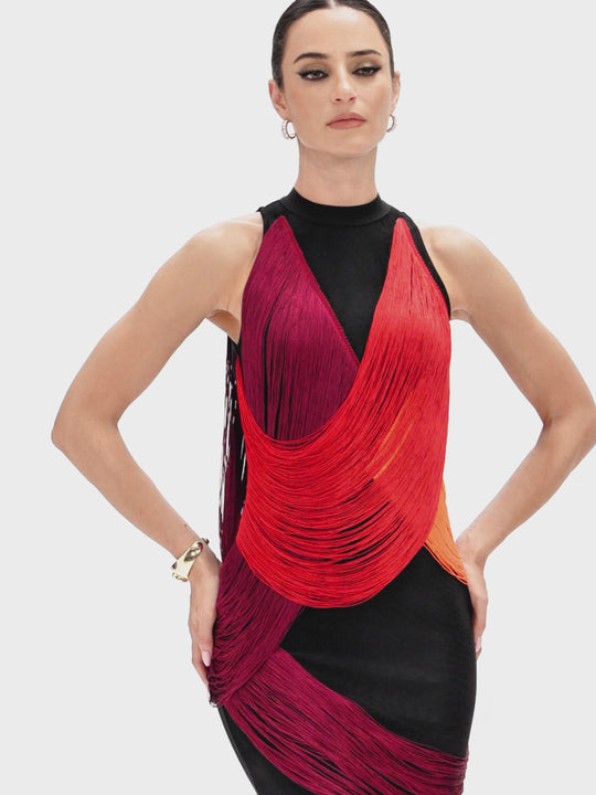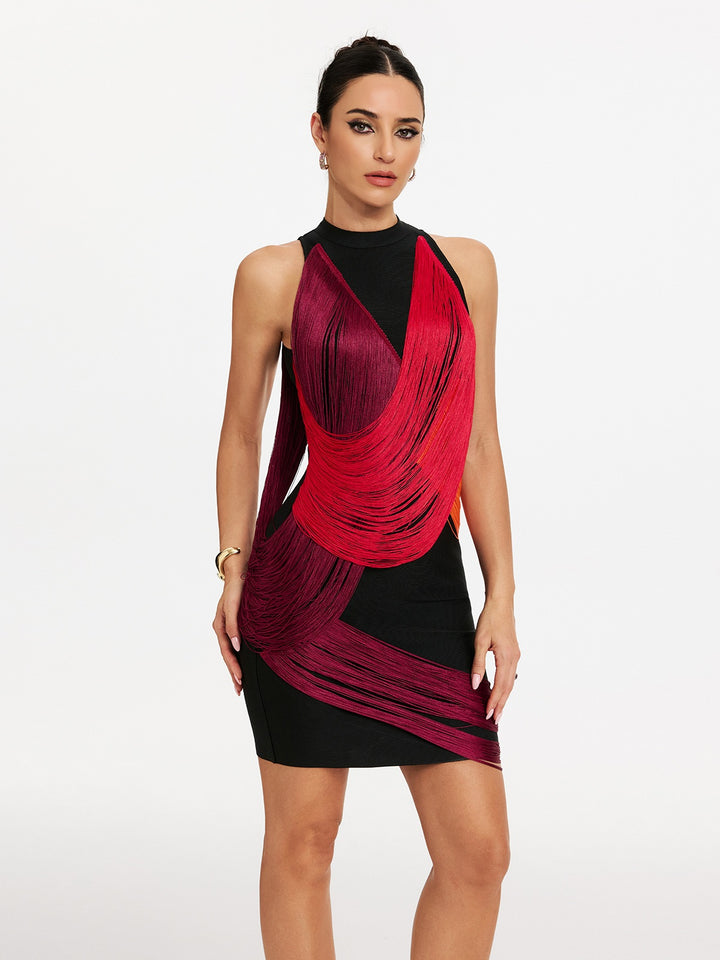 Makoa Sleeveless Fringe Bandage Mini Dress