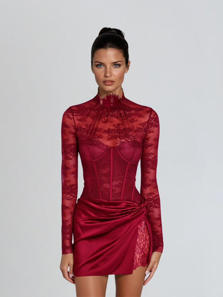 Cynosure Stand Collar Lace Skirt Set