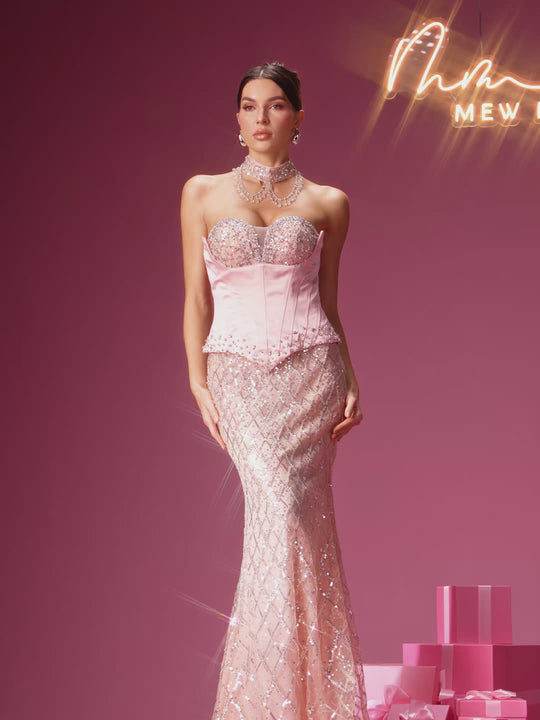 Flip Strapless Corset Rhinestone Sequin Maxi Dress