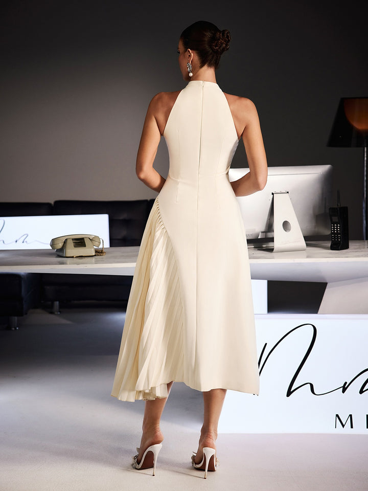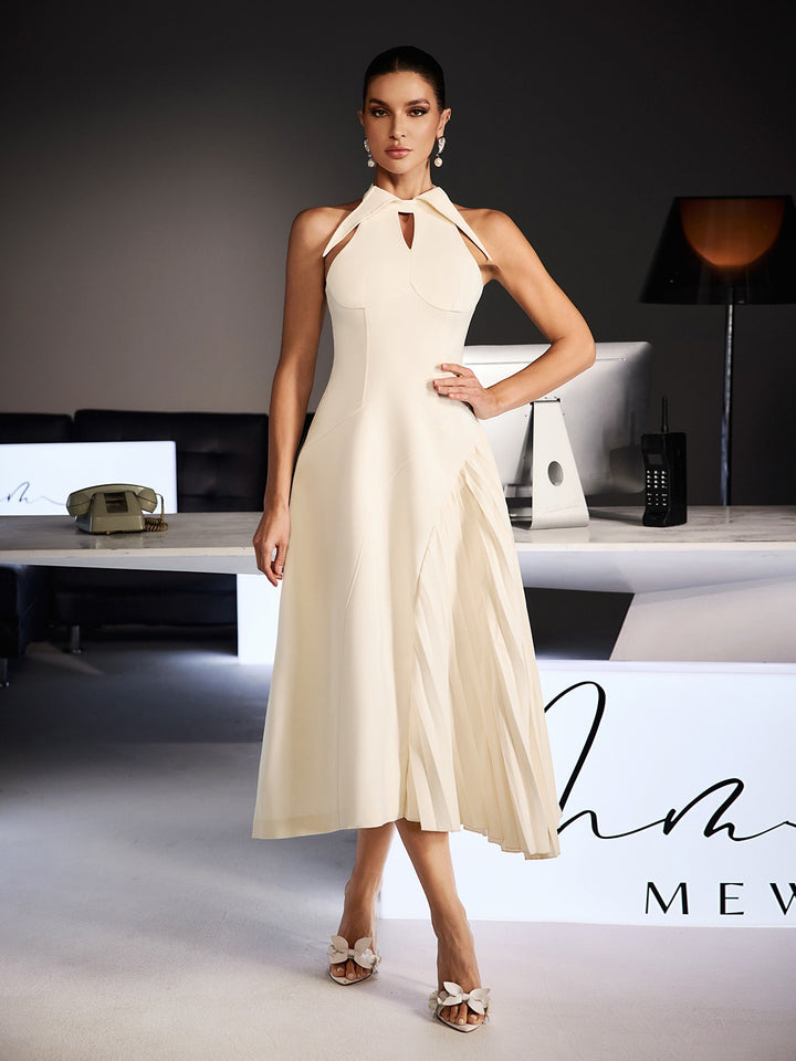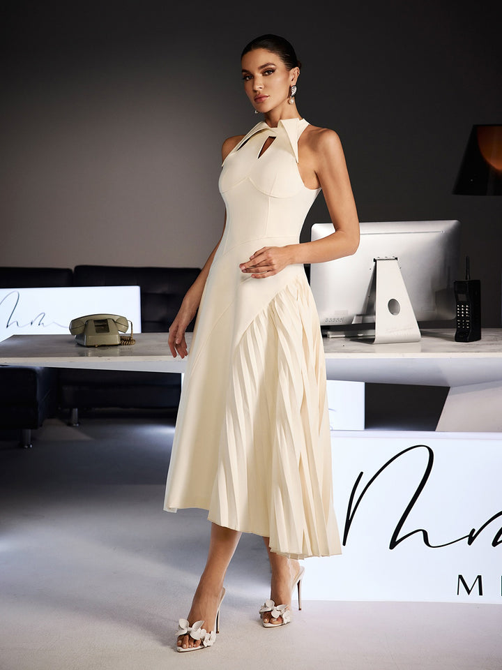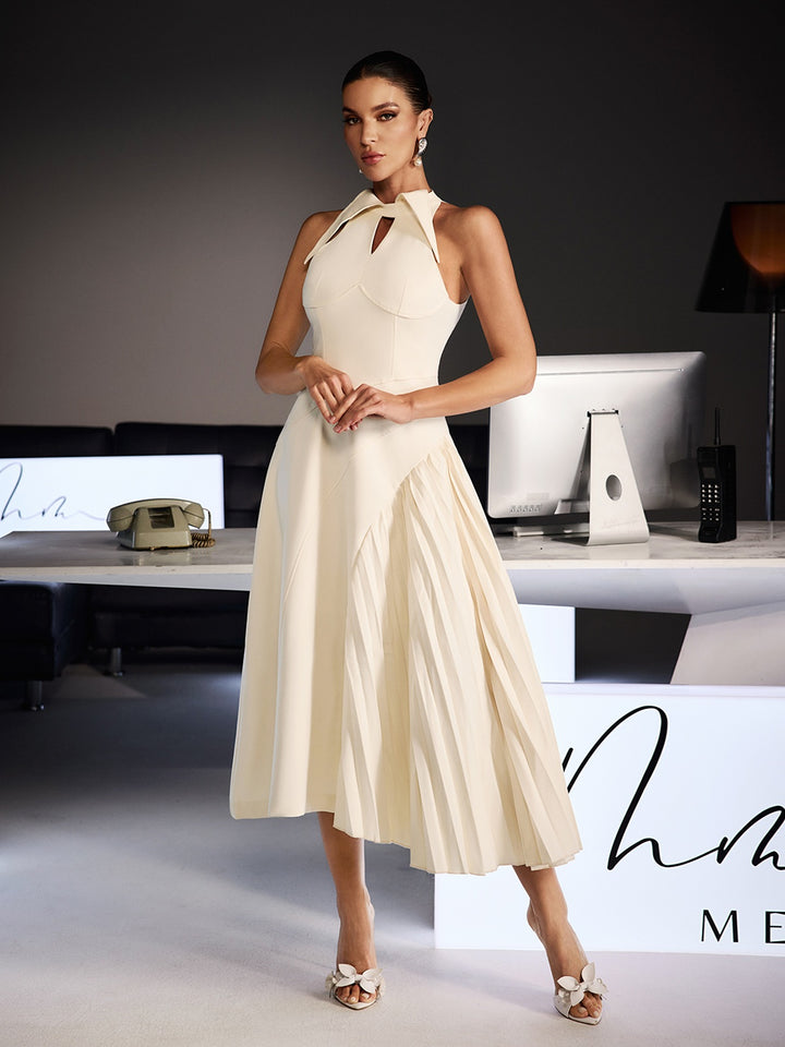 Llywelya Collar Pleated Midi Dress