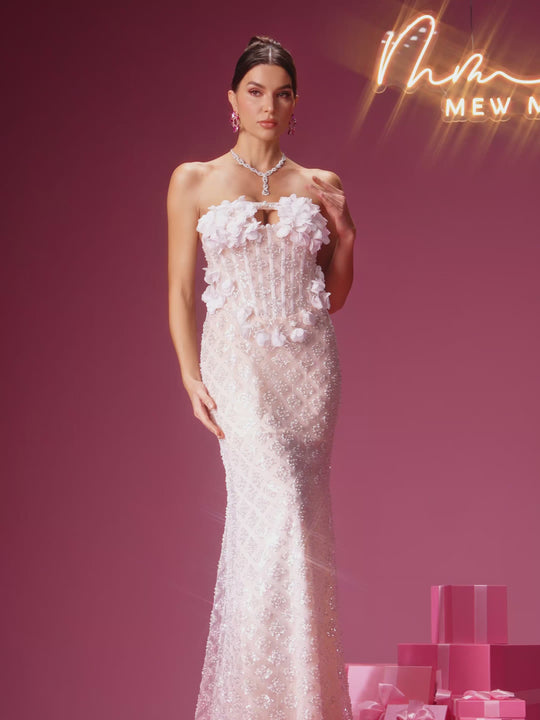 Nexory Strapless Flower Sequin Maxi Dress