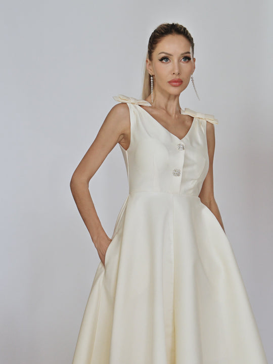 Elevate your style with the Diorum V Neck Bow Button Up Midi Dress. Featuring a flattering V-neckline and a charming bow detail, this dress combines elegance with a touch of femininity. The button-up front offers versatile styling options, while the midi length provides a graceful silhouette perfect for both day and evening occasions. Crafted to enhance your confidence and comfort, this dress is a timeless addition to your wardrobe. Make every moment memorable with Diorum’s sophisticated design.