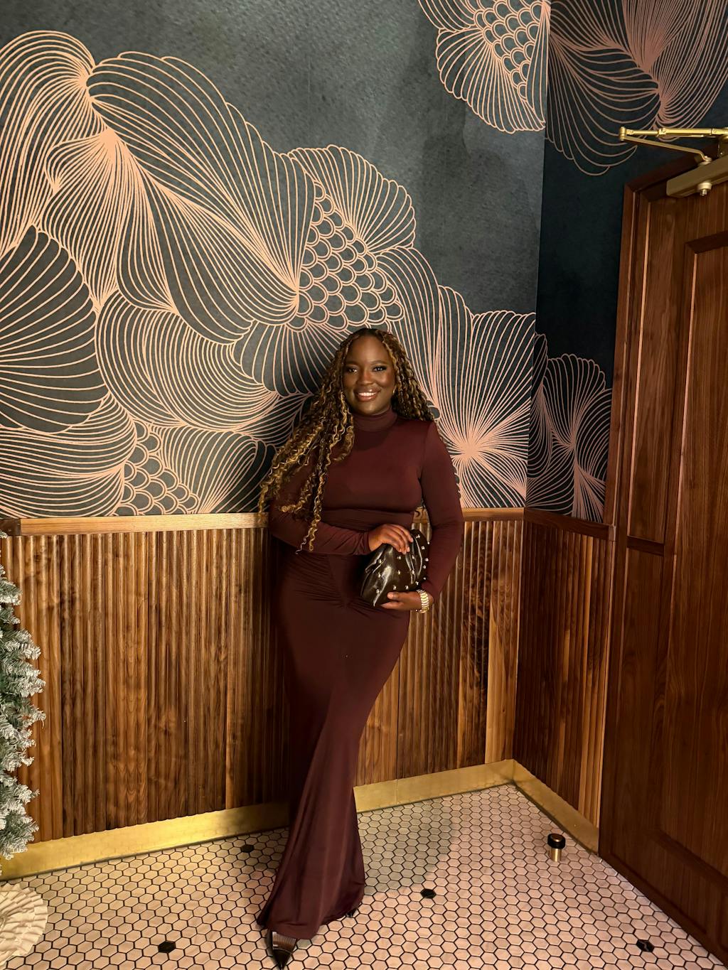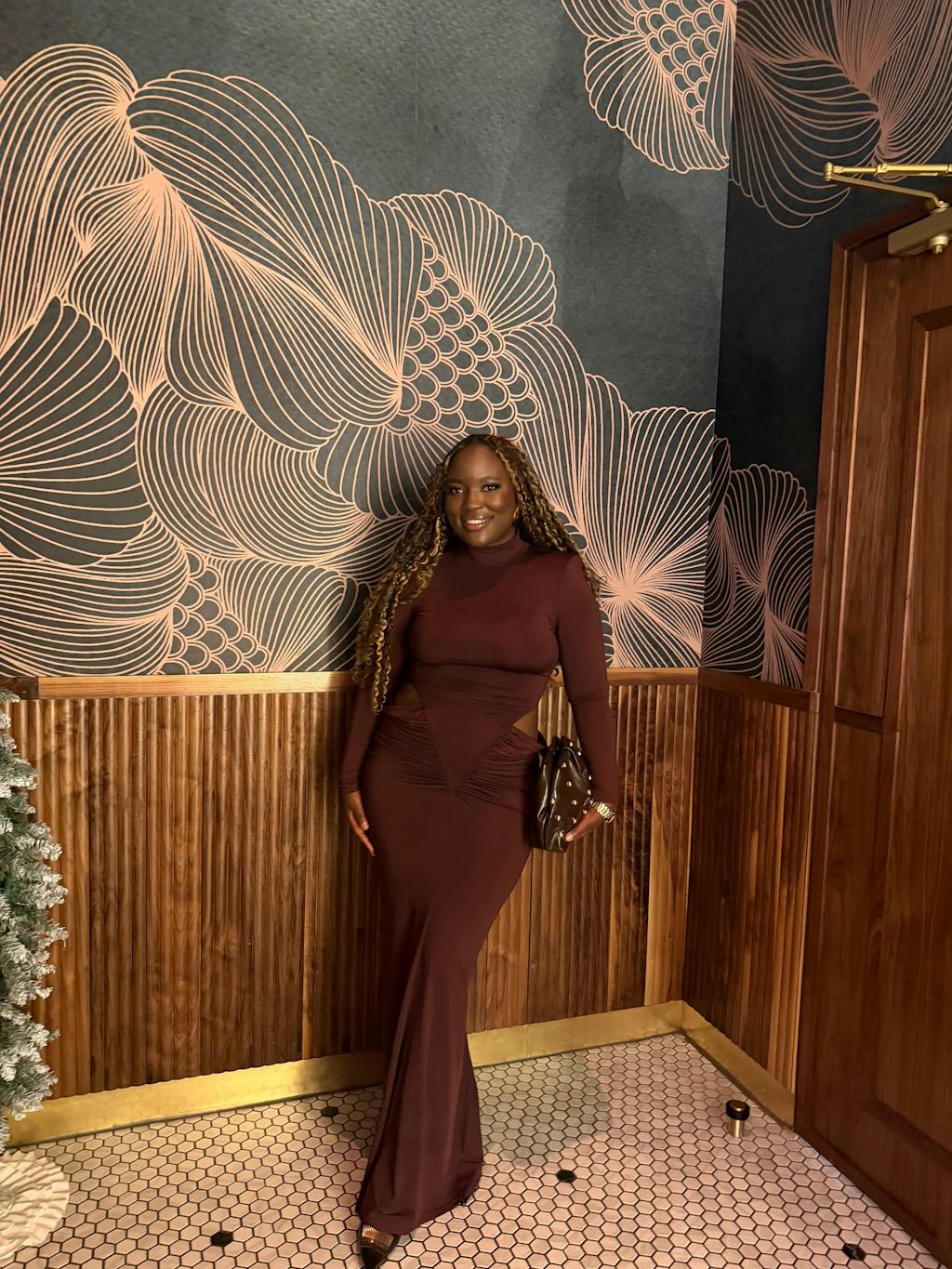 Dualux High Neck Cutout Maxi Dress In Wine